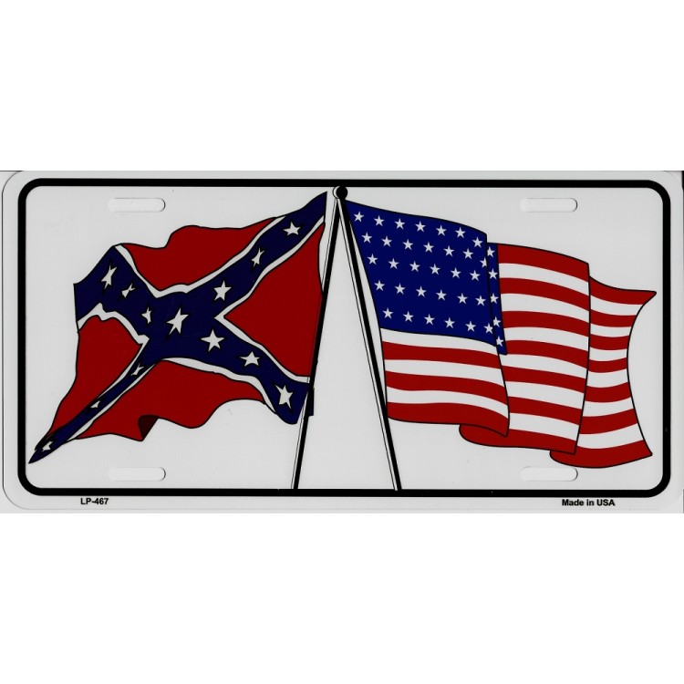 United States And Confederate Crossed Flag Metal License Plate