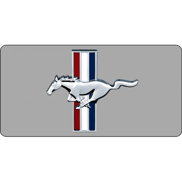 Ford Mustang Tri-bar Pony Logo Gray Photo License Plate