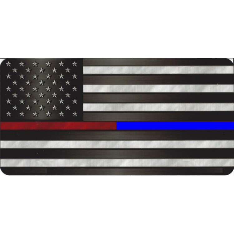 Police And Firefighter Thin Line American Flag Photo License Plate