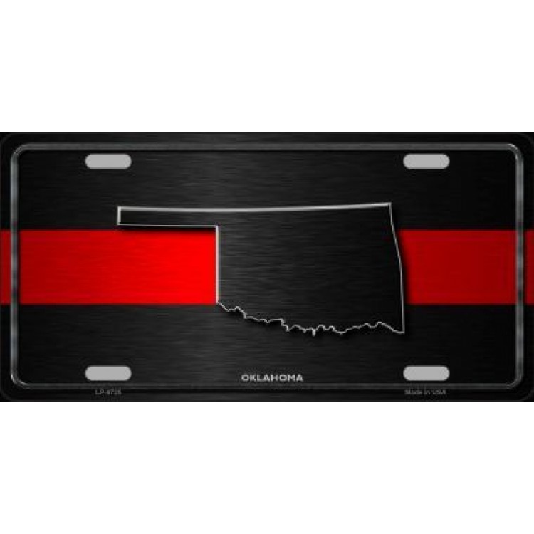 Oklahoma Thin Red Line Metal License Plate