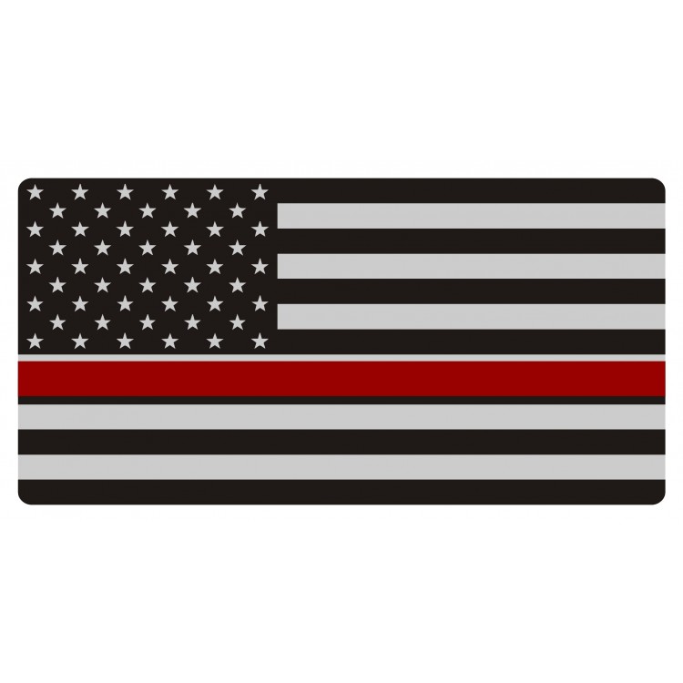Thin Red Line On Grey U.S. Flag Photo License Plate