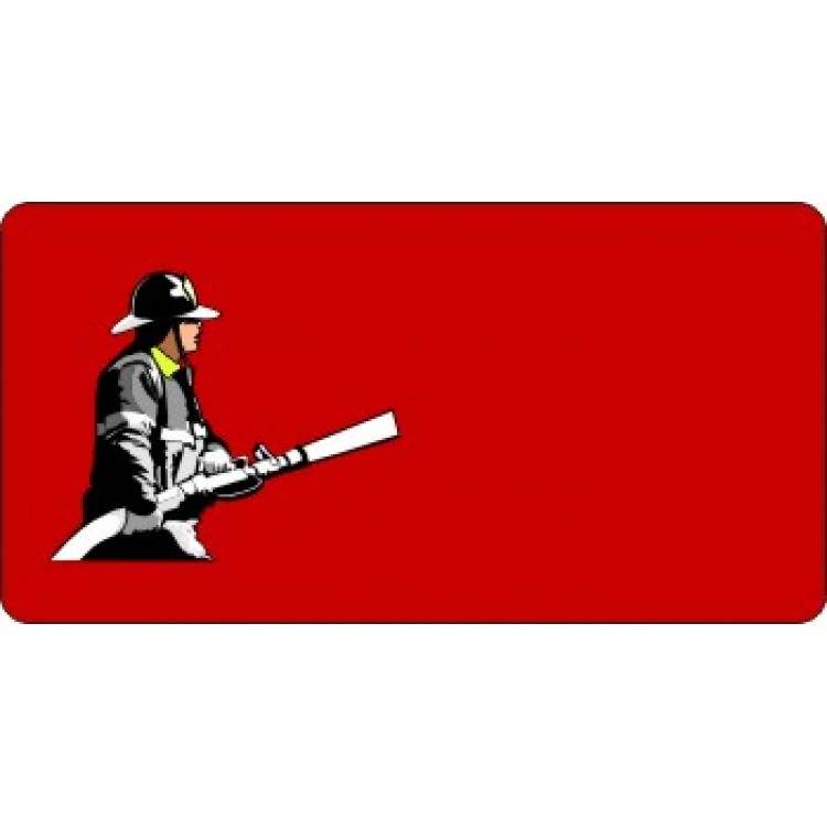 Offset Fire Fighter With Hose Photo License Plate