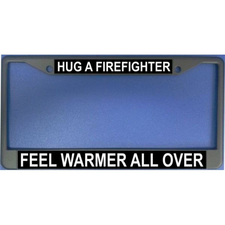 Hug A Firefighter Feel Warmer All Over Chrome License Plate Frame