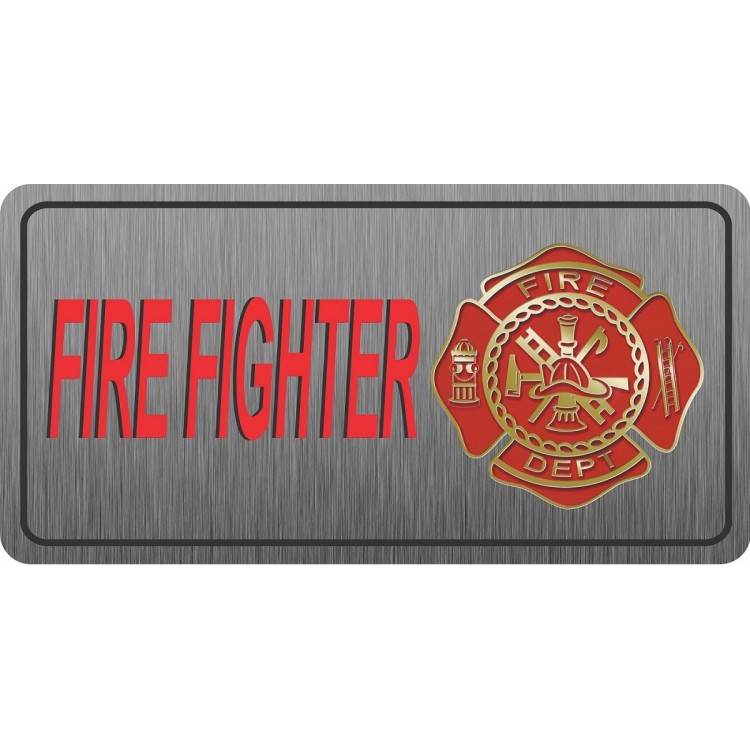 Fire Fighter Brushed Aluminum Photo License Plate