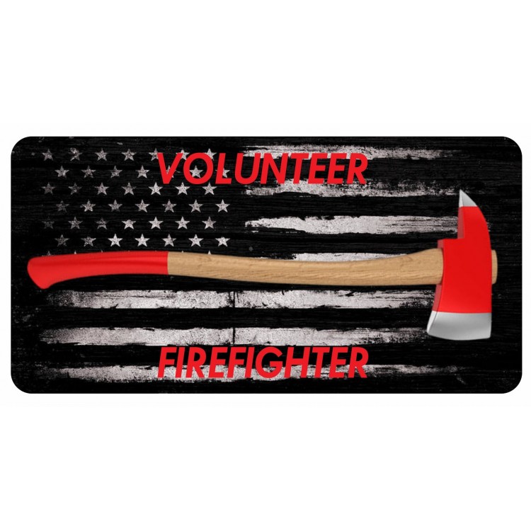 Volunteer Firefighter Axe On U.S.A. Flag Photo License Plate
