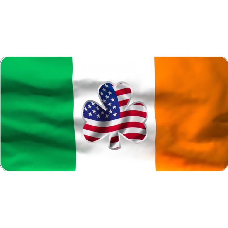 Irish Flag With U.S. Flag Shamrock Photo License Plate