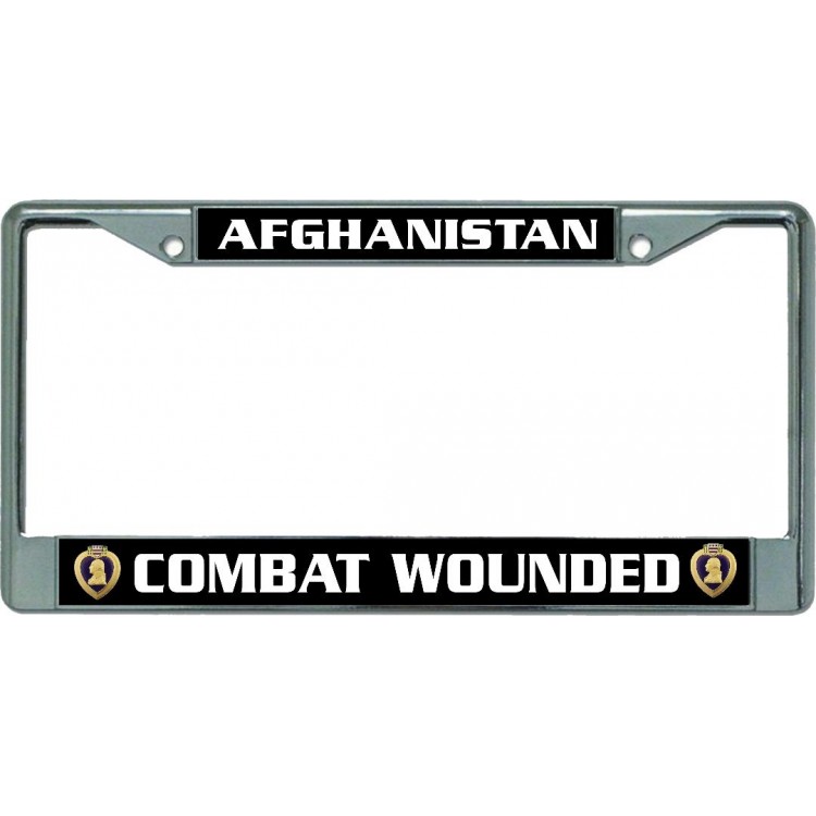Afghanistan Purple Heart Combat Wounded Chrome License Plate Frame