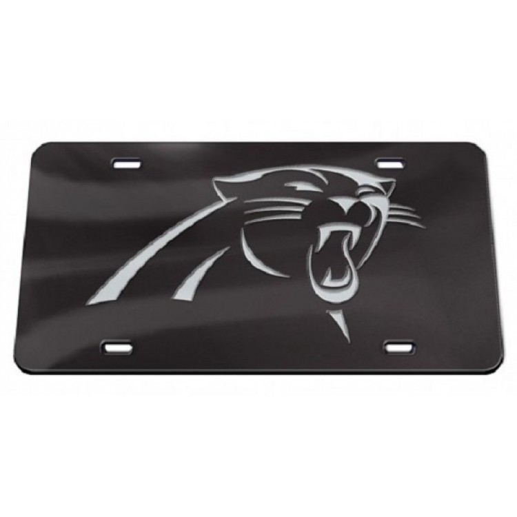 Carolina Panthers Black Crystal Mirror Laser License Plate