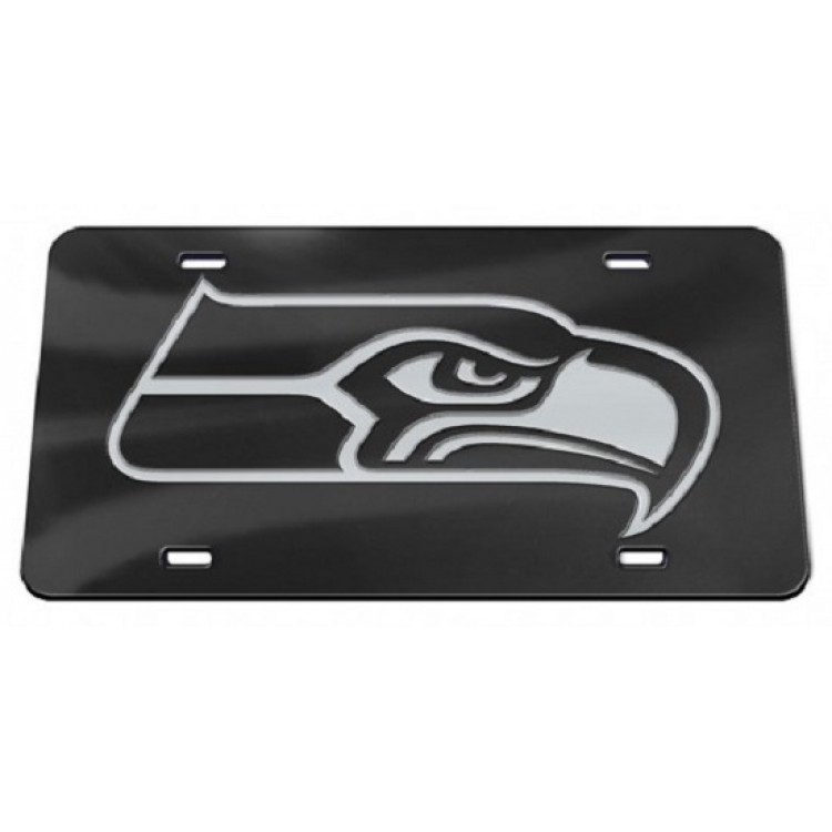 Seattle Seahawks Black Crystal Mirror Laser License Plate