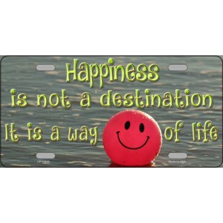 Happiness Way Of Life ... Smiley Ball Metal License Plate