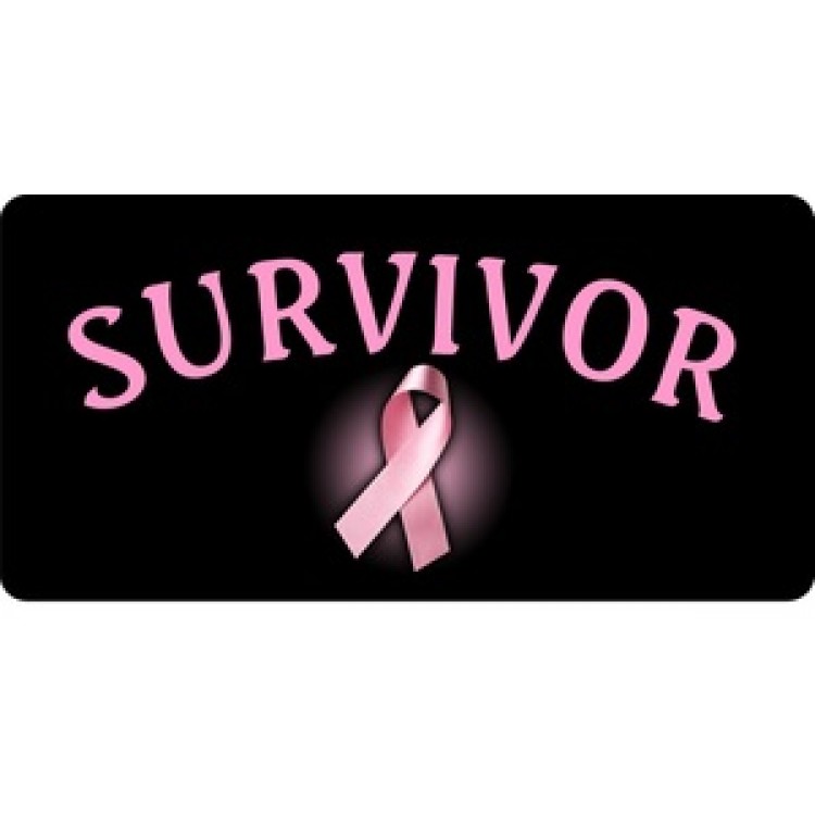 Survivor Pink Ribbon On Black Photo License Plate