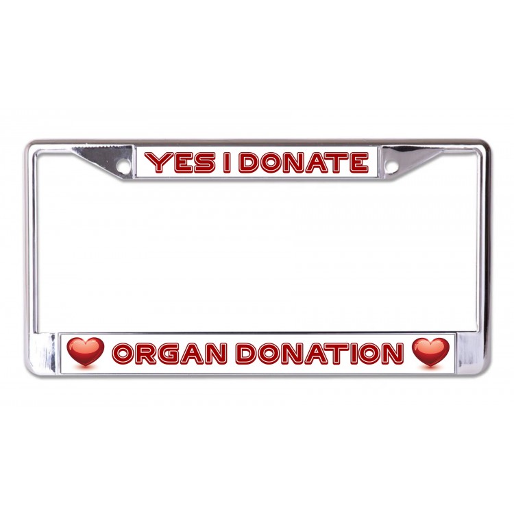 Yes I Donate Organ Donation Chrome License Plate Frame