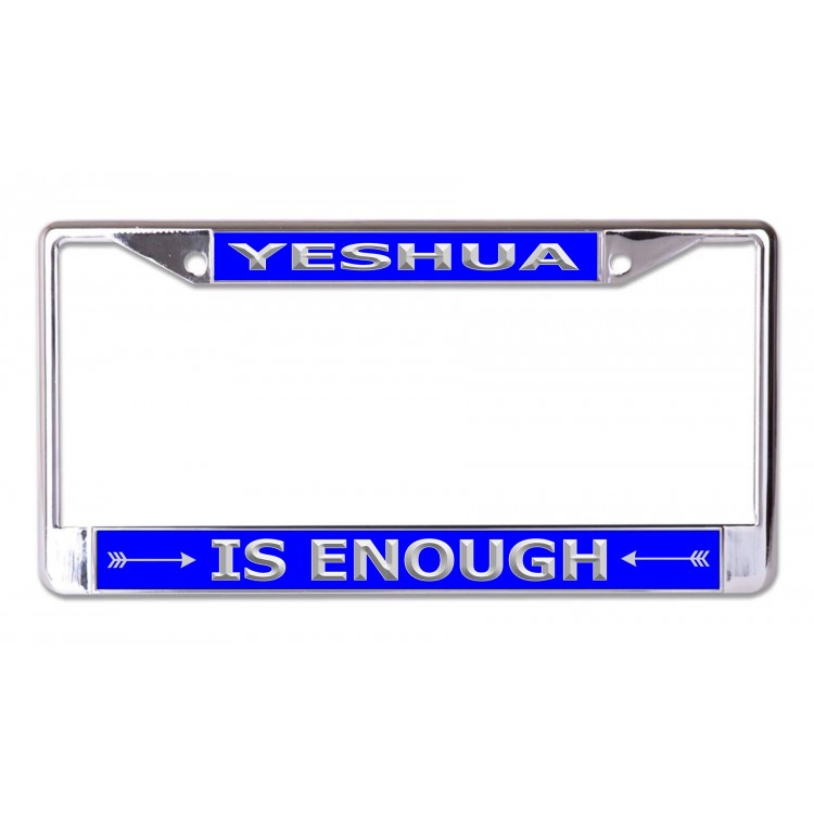 Yeshua Is Enough On Blue Chrome License Plate Frame