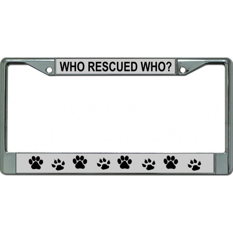 Who Rescued Who Paw Print Chrome License Plate Frame