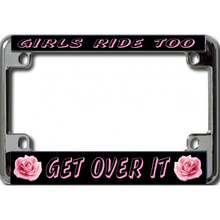Girls Ride Too Chrome Motorcycle License Plate Frame