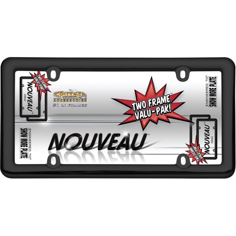 Nouveau Black Plastic License Plate Frame 2 pack