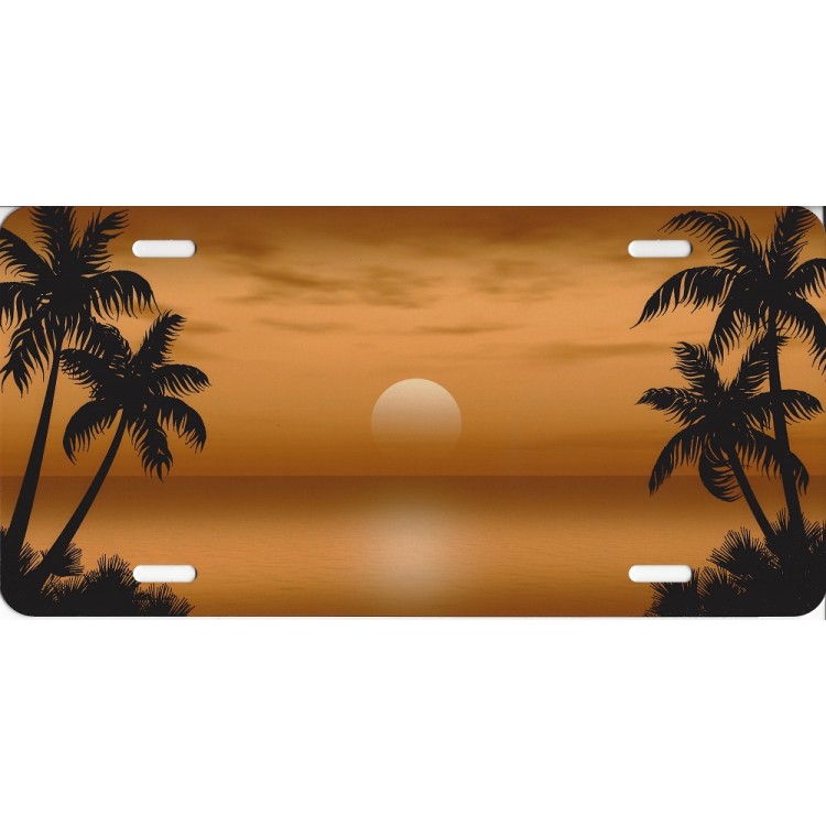 Palm Trees on Orange Airbrush License Plate